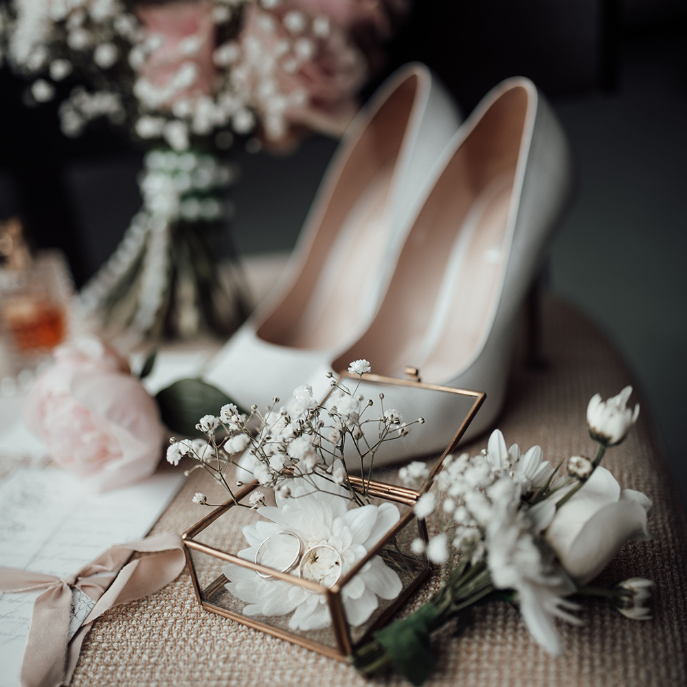 Schleier, Schmuck, Schuhe und viele weitere Details für deinen Brautlook. Sorgfältig ausgewählt, um dein Brautkleid stilvoll zu ergänzen.